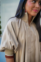 Brighten your wardrobe with the Jackie Top, featuring playful color block puff sleeves and a contrasting ribbed mock neck collar. The zip-up front adds a modern edge, while the flowy silhouette lets you move with ease and style. Perfect for turning heads with a fun and fresh look!