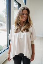 Brighten your wardrobe with the Jackie Top, featuring chic puff sleeves and a solid ribbed mock neck collar. The zip-up front adds a modern edge, while the flowy silhouette lets you move with ease and style. Perfect for turning heads with a fun and fresh look!