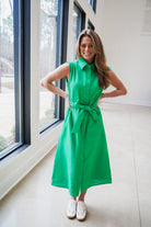 DOLCE CABO Linen Belted Button Down Maxi Dress - Green