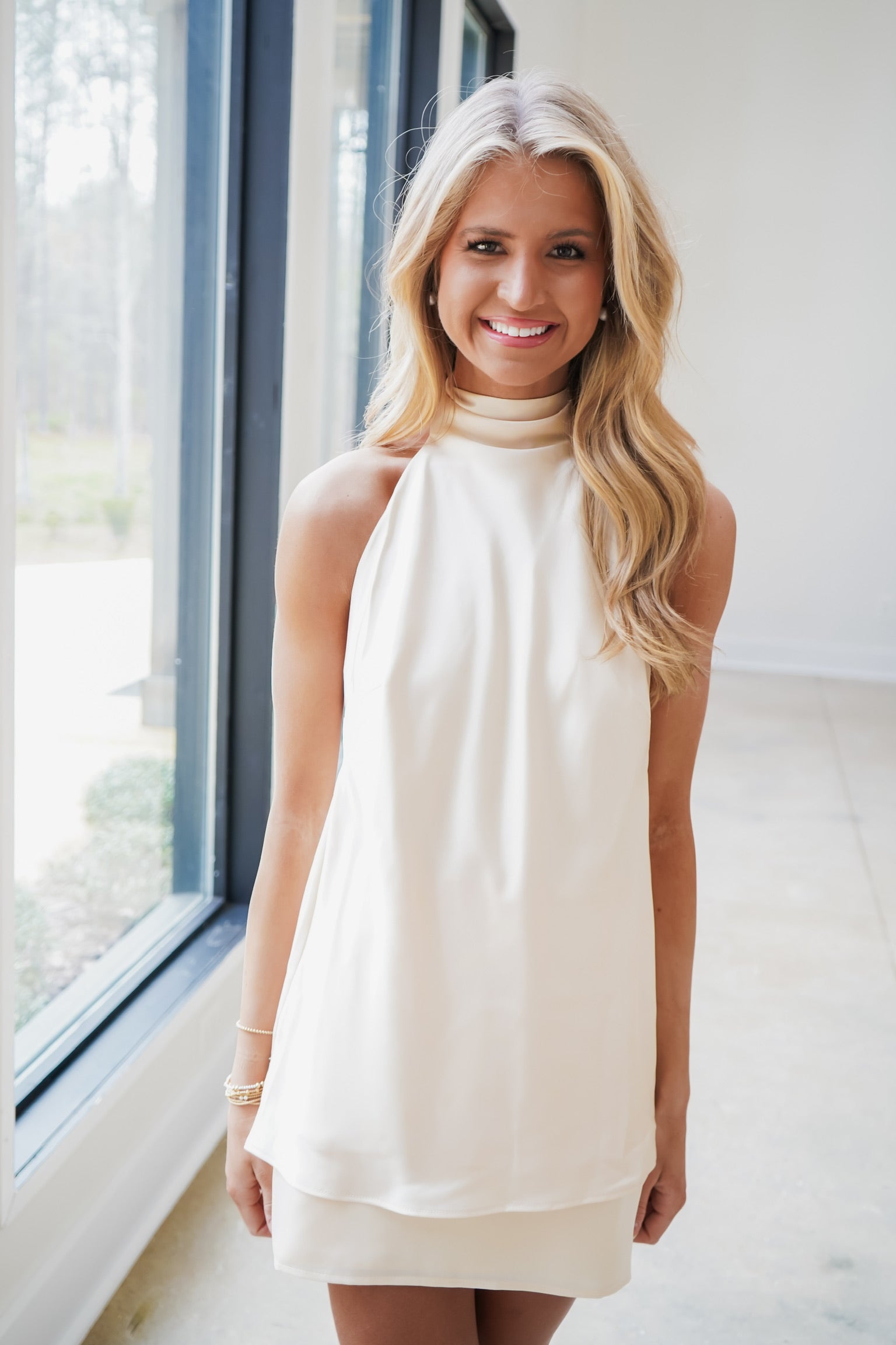 Inspired by our bestselling dress, the Lisa Top - Buttercream brings that same flirty charm to your everyday look. A chic halter neckline with a fluttery scarf tie adds a sweet touch of romance, while the dramatic open back makes a statement. Pair it with your favorite jeans or make it a set with the matching mini skirt for a night out moment!
