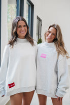 Cozy up in this oversized heather grey sweatshirt that's giving effortless cool. The mock neck keeps things snug while the relaxed fit lets you move freely—perfect for those days when comfort is non-negotiable. The real star? That adorable baby pink woven patch label stitched front and center with "ALABAMA" spelled out in bold. It's the kind of piece that works solo or layered, making it your new go-to for casual vibes and weekend hangs.