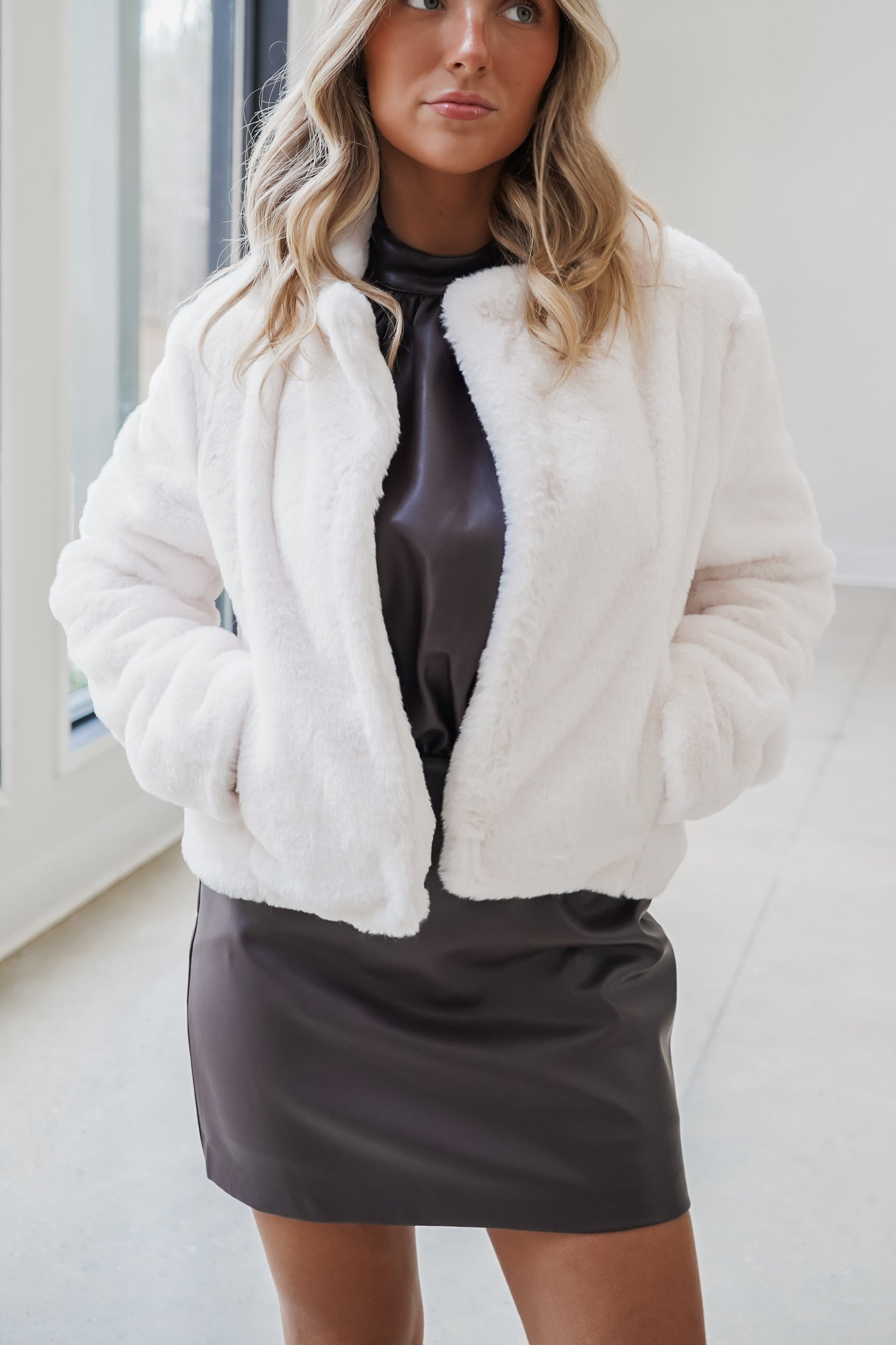 Plush Faux Fur Jacket - Ivory