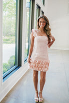 Elevate your wardrobe with the Rosabla Mini Dress, a sophisticated piece that blends timeless elegance with modern charm. Crafted in soft light pink tweed, this fitted shift silhouette flatters every frame while maintaining an effortless, polished aesthetic. The standout feature is the unique accordion petal disc skirt hem—a delicate architectural detail that adds movement and visual interest. Adjustable contrast satin pink bow shoulder straps provide both comfort and a playful pop of color, while the square neckline frames the shoulders beautifully. Perfect for cocktail events, brunch dates, or elevated casual occasions, this mini dress transitions seamlessly from day to night. The quality tweed fabric ensures durability and a refined finish that works season after season.