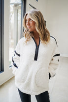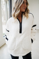 Wrap yourself in comfort with the Sarah Jacket—your new go-to layer for effortless style. This lightweight fleece pullover features a convenient half-zip front closure accented with eye-catching contrasting trim that adds a fun pop of personality. The adjustable drawstring hem lets you customize the fit, whether you're lounging at home or heading out for an adventure. Cozy, versatile, and undeniably chic.