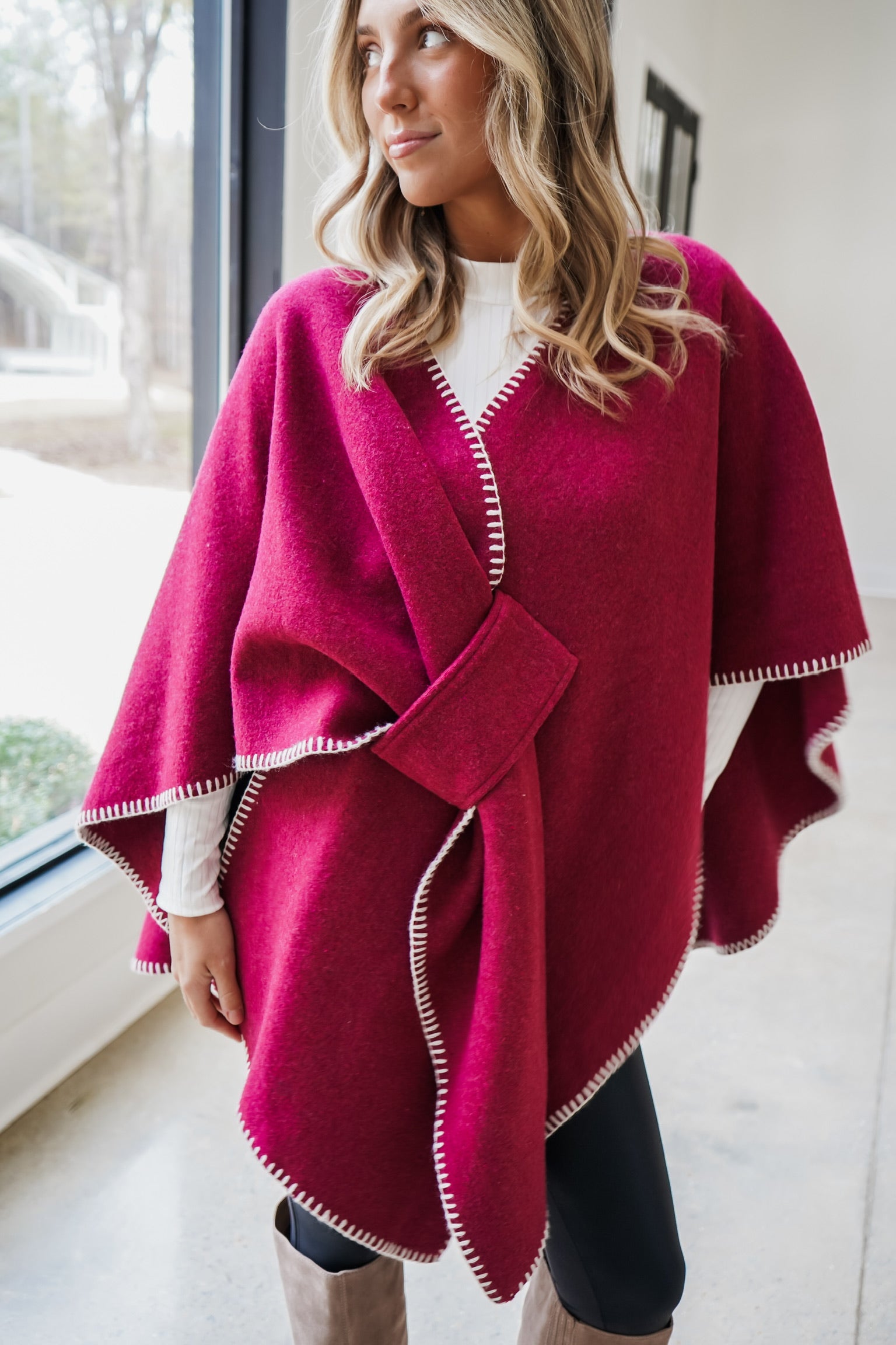 Whip Stitch Wrap - Burgundy/Creme