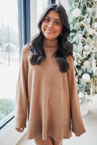 Wide Sleeve Turtleneck Sweater Tunic - Camel