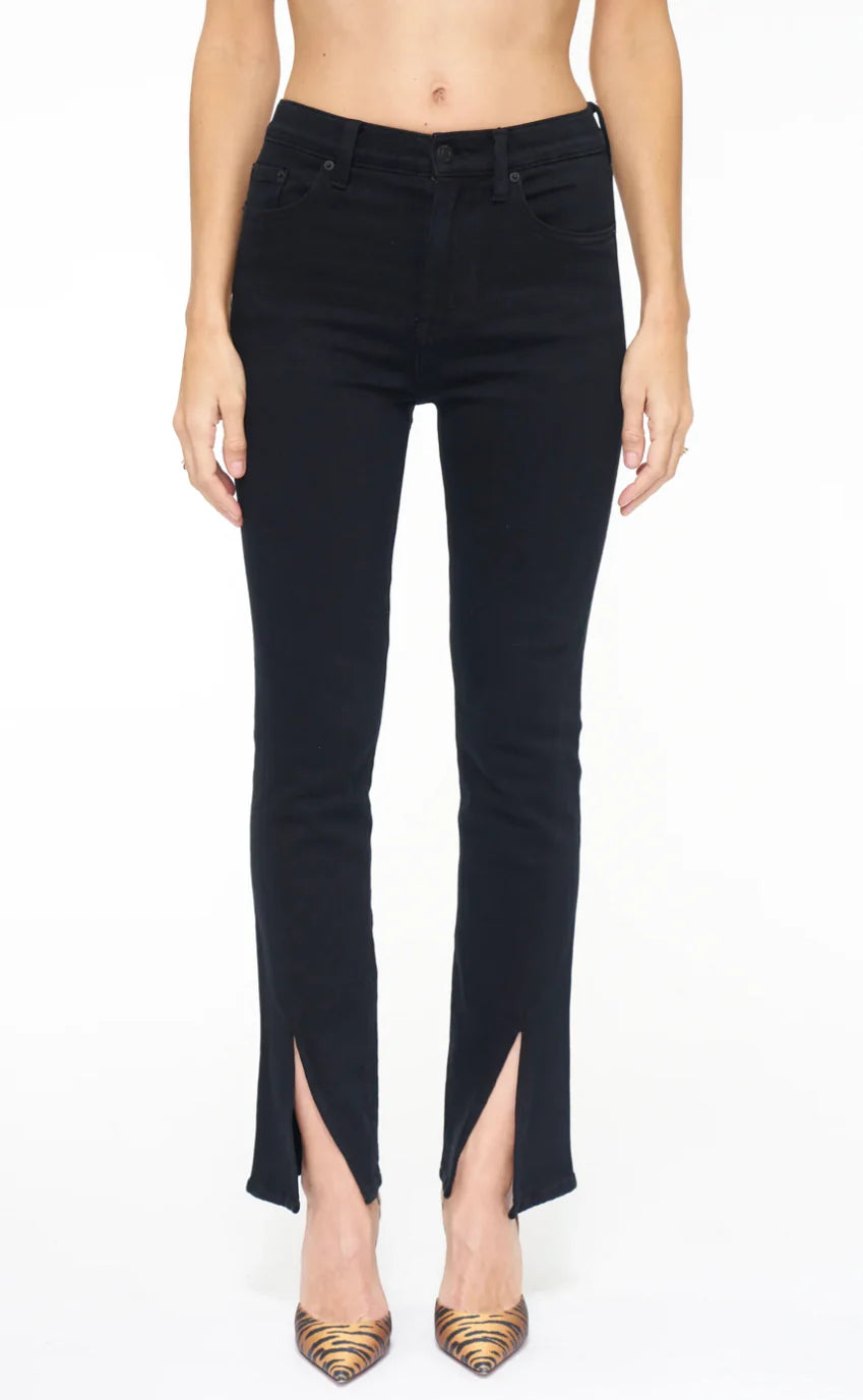 This style comes in a dark wash denim with a metal button closure and a zip fly. The Teagan has a chic slit detail at each ankle — the perfect complement to a statement shoe.