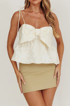 Feel stylishly delicate in our Odessa Top! With its shoulder tie straps and bow bodice detail, this Ivory jacquard flower print babydoll top is the perfect blend of sweet and sassy. Add a touch of whimsy to your wardrobe and bask in the compliments!