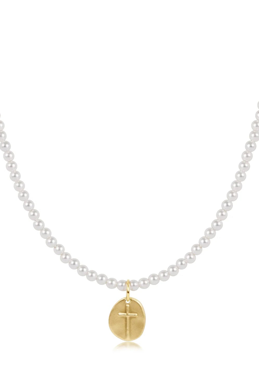 15" Choker Classic Pearl 3mm Bead - Inspire Small Gold Charm