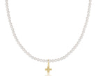 ENewton 17" Choker Classic Pearl 3mm Bead - Signature Cross Gold Charm
