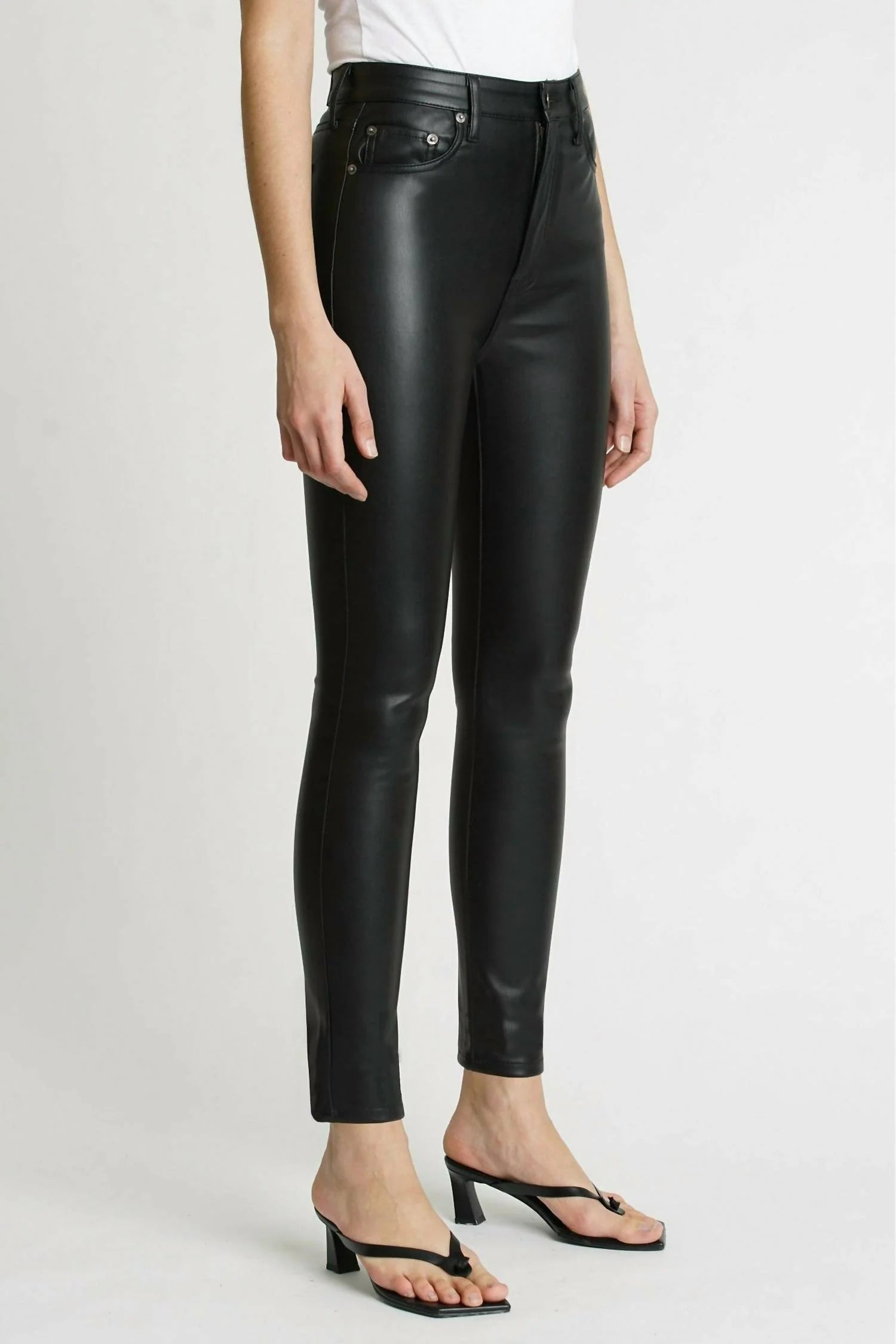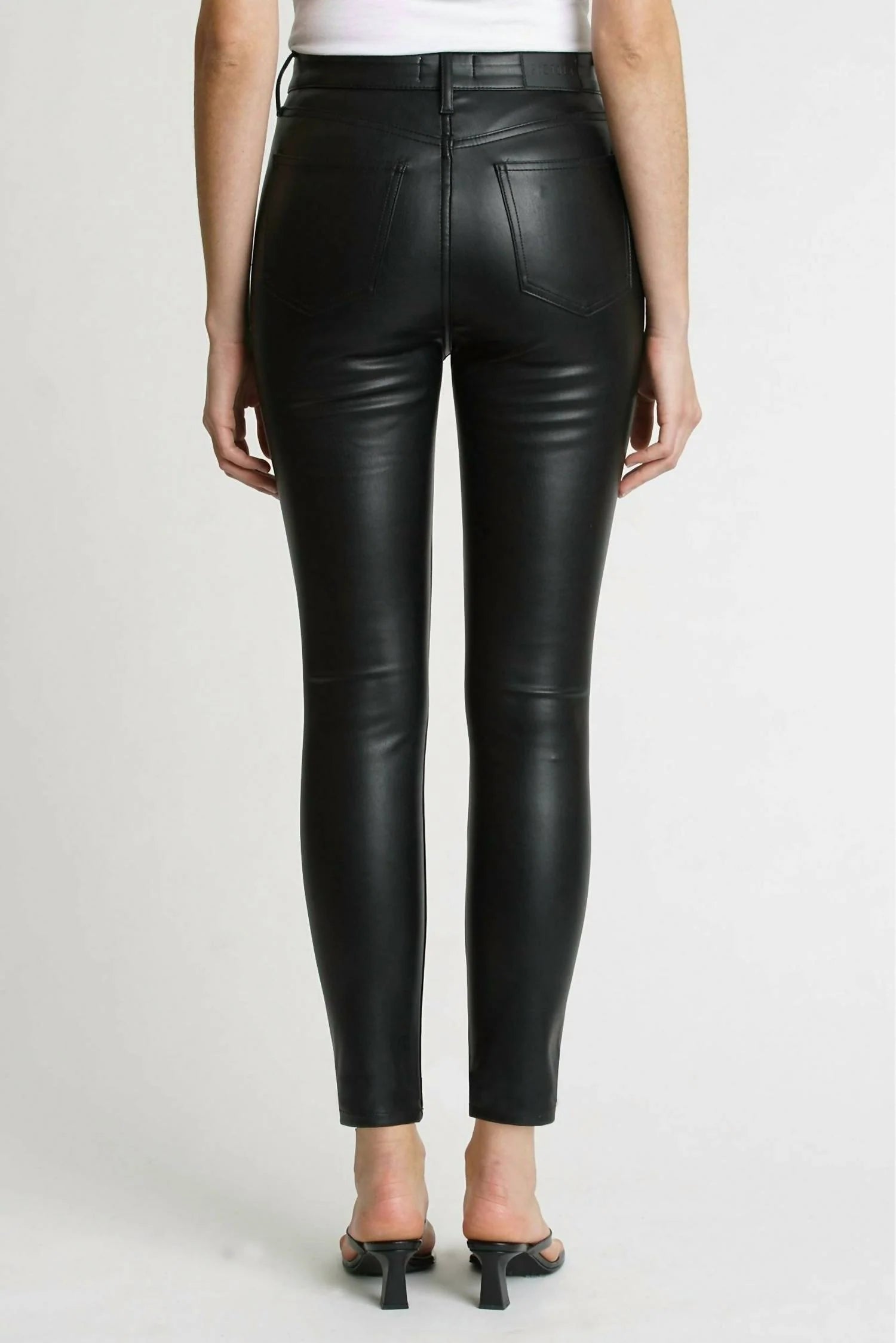Meet your new wardrobe essential—a sleek skinny pant that delivers both style and comfort. Crafted in luxe vegan leather, this high-rise silhouette flatters your frame while elongating your legs. Dress it down with boots for an effortless vibe, or elevate it with a blazer and heels for something more polished. Versatile, chic, and ready to work with everything in your closet.