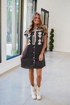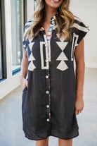 The Behr Dress offers playful sophistication with its black cap sleeves and airy linen fabric. Featuring a ruffle collar and a hidden colorblock stripe print, this mini dress adds a fun surprise to your stylish look.