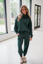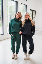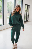 Get ready to lounge in style with the Blare Set! Featuring soft scuba jogger pants with a comfy elastic waistband and drawstring tie for the perfect fit, paired with a matching funnel turtleneck pullover that rocks a chic ribbed collar detail. The tapered leg adds a sleek touch, making this set perfect whether you're kicking back or stepping out. Cozy, cool, and effortlessly playful!