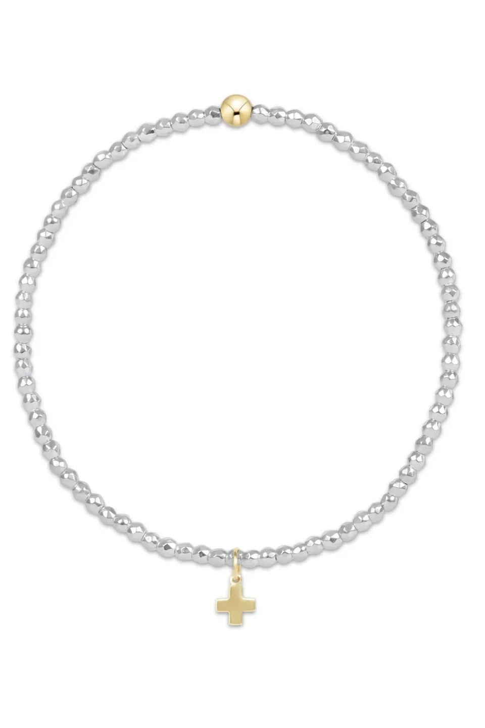 ENewton Bright Silver Faceted Hematite 2mm Bead Bracelet - Signature Cross Gold Charm