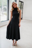 Turn heads with the Chanci Maxi Dress — a sleeveless stunner featuring a high mock neck and a fitted bodice that flows into a playful pleated flare skirt. Perfect for twirling through your day or night, this dress blends elegance with a flirty vibe effortlessly.