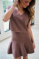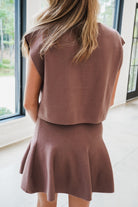 Get ready to turn heads with the Charlotte Set—featuring a cozy brown sleeveless v-neck sweater top paired perfectly with a flared mini skirt. This duo effortlessly blends comfort and flirty style, making it ideal for sunny days or casual nights out. Let your playful side shine while staying chic and comfy all day long.