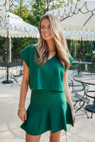 Get ready to turn heads with the Charlotte Set—featuring a cozy green sleeveless v-neck sweater top paired perfectly with a flared mini skirt. This duo effortlessly blends comfort and flirty style, making it ideal for sunny days or casual nights out. Let your playful side shine while staying chic and comfy all day long.