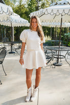 Step into effortless style with the Collie Set—a playful duo in cream! This cozy puff short sleeve knit crop top pairs perfectly with a mini fit-and-flare skirt, creating a flattering silhouette that’s both fun and chic. Whether you're dressing up for a casual outing or brunch with friends, this set keeps comfort and charm at the forefront. Embrace easygoing fashion with a twist of whimsy!