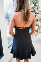 The Farah Mini Dress is your go-to piece for turning heads. This sleek number features a flirty halter neckline and an open back with an adjustable neck tie string—perfect for showing off your best angles. The low ruffle hemline adds a playful touch of movement, while the back zipper closure keeps everything secure. Whether you're heading to a night out or a special event, this dress delivers effortless style with just the right amount of sass.