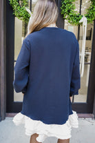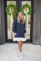 Embrace effortless chic with the Karolina Mini Dress—featuring a matte black long puff sleeve sweatshirt-style top and a playful contrast ecru tiered ruffle hem. Its crewneck design adds a cozy touch while the tiered ruffles bring fun and movement to your look. Perfect for days when you want comfort and style to team up in the most delightful way.