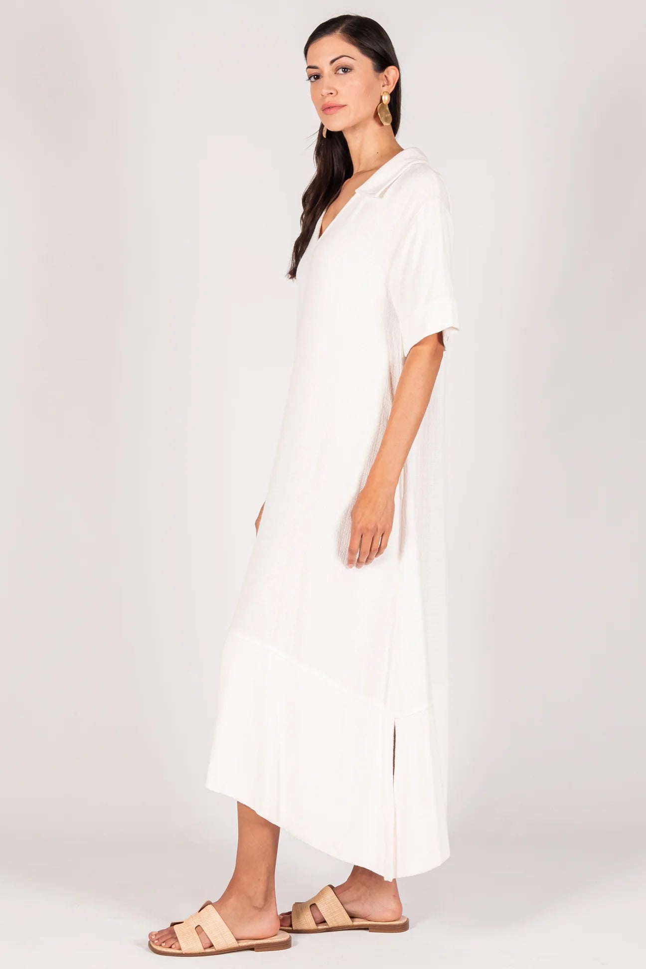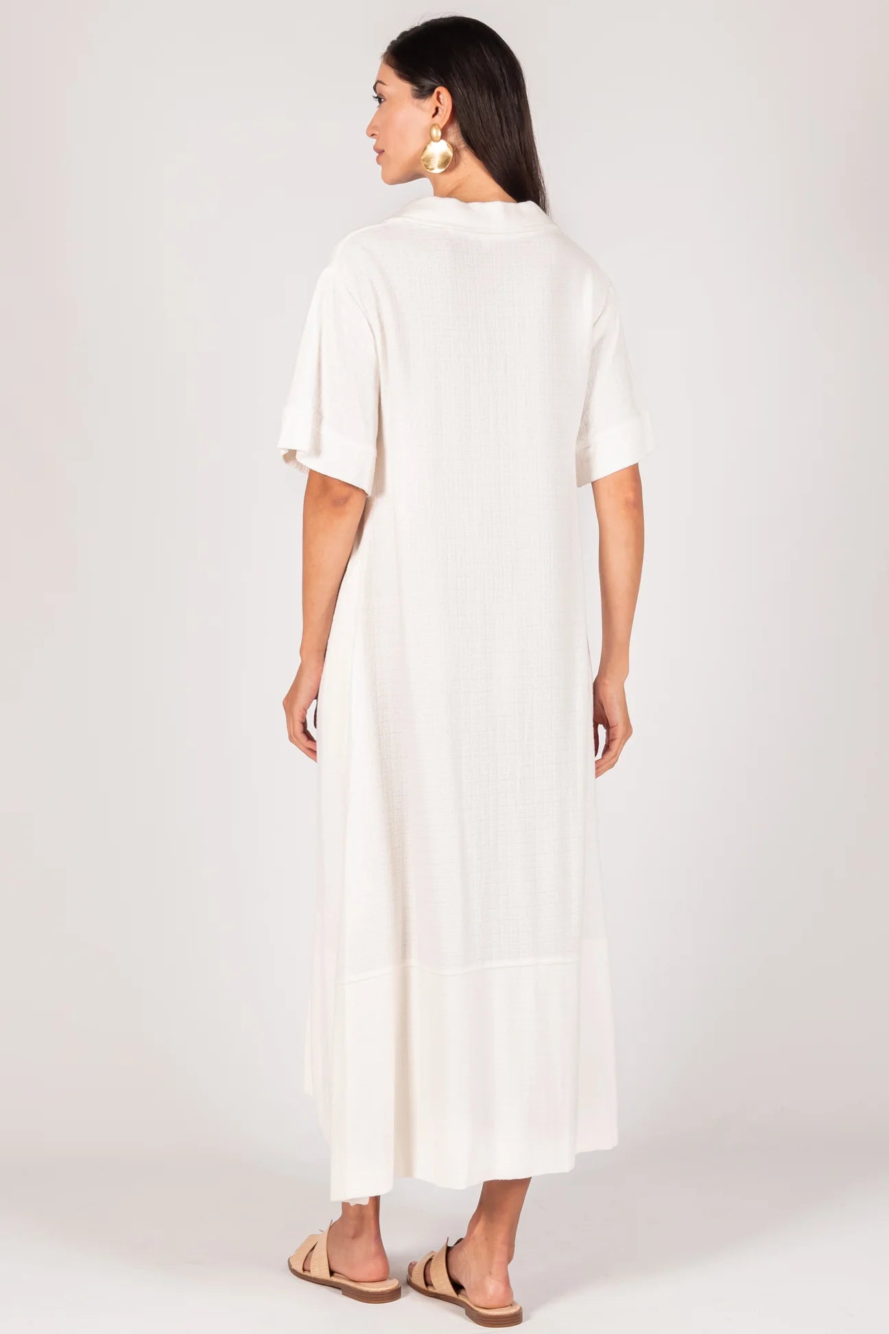 Linen Collared Midi Dress - Ivory - FINAL SALE