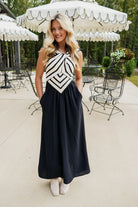 Elevate your summer wardrobe with the Livie Maxi Dress! This playful sleeveless dress features a chic halter neckline and a stripe bodice detail that adds a fun, flirty touch. Its flowing maxi length creates effortless elegance, perfect for beach days or evening strolls. Feel breezy and stylish all day long with this must-have dress.