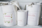 - Mini: 3 oz. repurposed glass jar, 30-40 hour burn time
