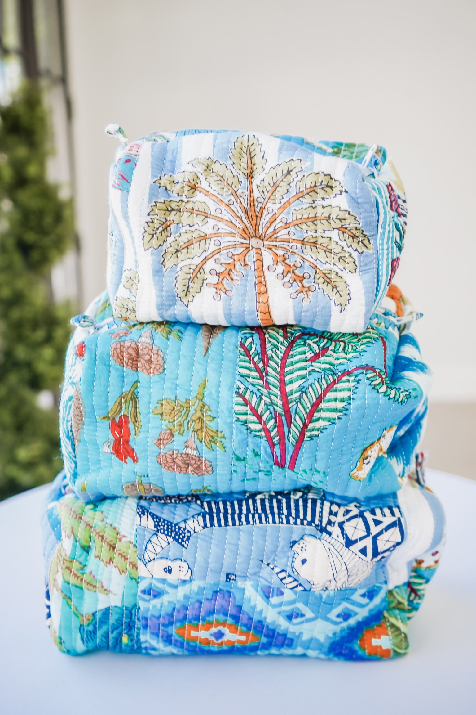 Organize your essentials in style with this charming quilted travel pouch. The eye-catching quilted patchwork design makes a statement while the full zip closure keeps your cosmetics secure. Inside, discover four dedicated pockets for smart organization, plus a wipeable plastic interior that handles spills and splashes effortlessly. Compact yet spacious, it's the perfect companion for weekend getaways, gym trips, or everyday touch-ups. Durable construction meets thoughtful design—everything you need to travel with confidence.