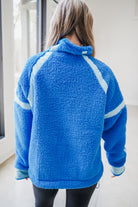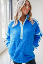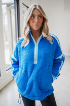 Wrap yourself in comfort with the Sarah Jacket—your new go-to layer for effortless style. This lightweight fleece pullover features a convenient half-zip front closure accented with eye-catching contrasting trim that adds a fun pop of personality. The adjustable drawstring hem lets you customize the fit, whether you're lounging at home or heading out for an adventure. Cozy, versatile, and undeniably chic.