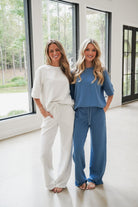 Experience casual comfort with the Serena Set! Crafted from a soft cotton and scuba-like fabric blend, these straight pants feature a stretchy elastic waistband for a perfect, easy fit. Paired with an oversized, boxy short-sleeve top, this set combines playful style with laid-back ease—ideal for days when you want to look effortlessly cool while staying comfy.