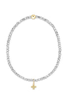 ENewton Silver Faceted Hematite 2mm Bead Bracelet - Signature Cross Gold Charm
