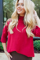 Wrap yourself in cozy charm with this 3/4 length long sleeve turtleneck sweater! Featuring a snug ribbed neck and cuffs, it keeps the chill at bay while adding a stylish twist. The fall shade brings warmth and a pop of color to any outfit—perfect for playful layering all season long.