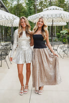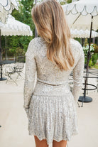 Turn heads in the Zelda Mini Dress! Covered in stunning platinum sequins, this long sleeve mini brings the sparkle with a trendy drop waist and a playful bubble hem. Party-perfect and ready for a night out!