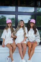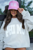Bid Day 2025 is right around the corner + our custom sorority sweatshirts are a must have this year! The coziest, oversized thrifted style sweatshirt in a neutral beige color with white puff block font. This garment is offered in M-XL and is meant to be an oversized, lived-in look. Model is wearing a size Large.