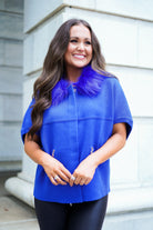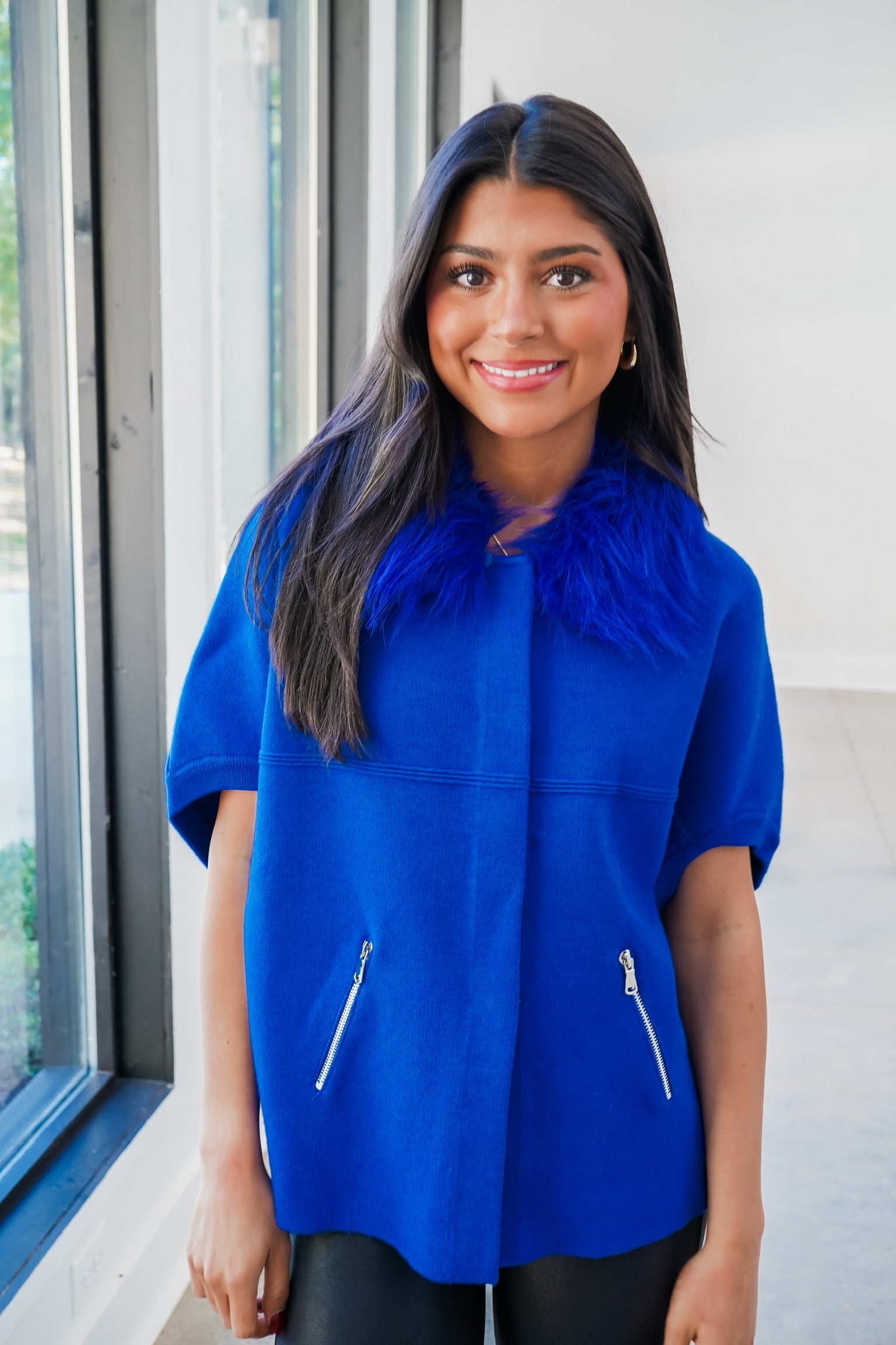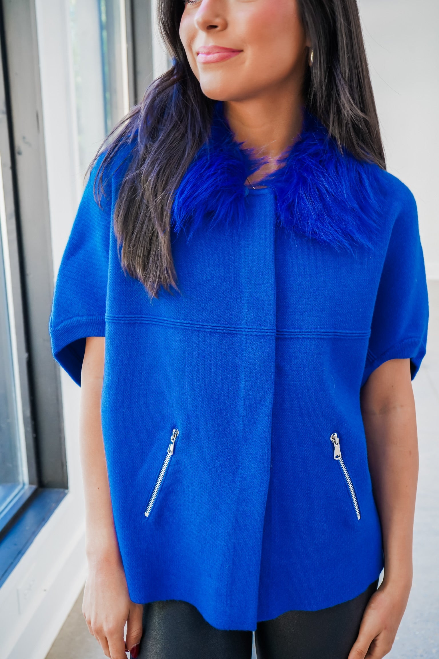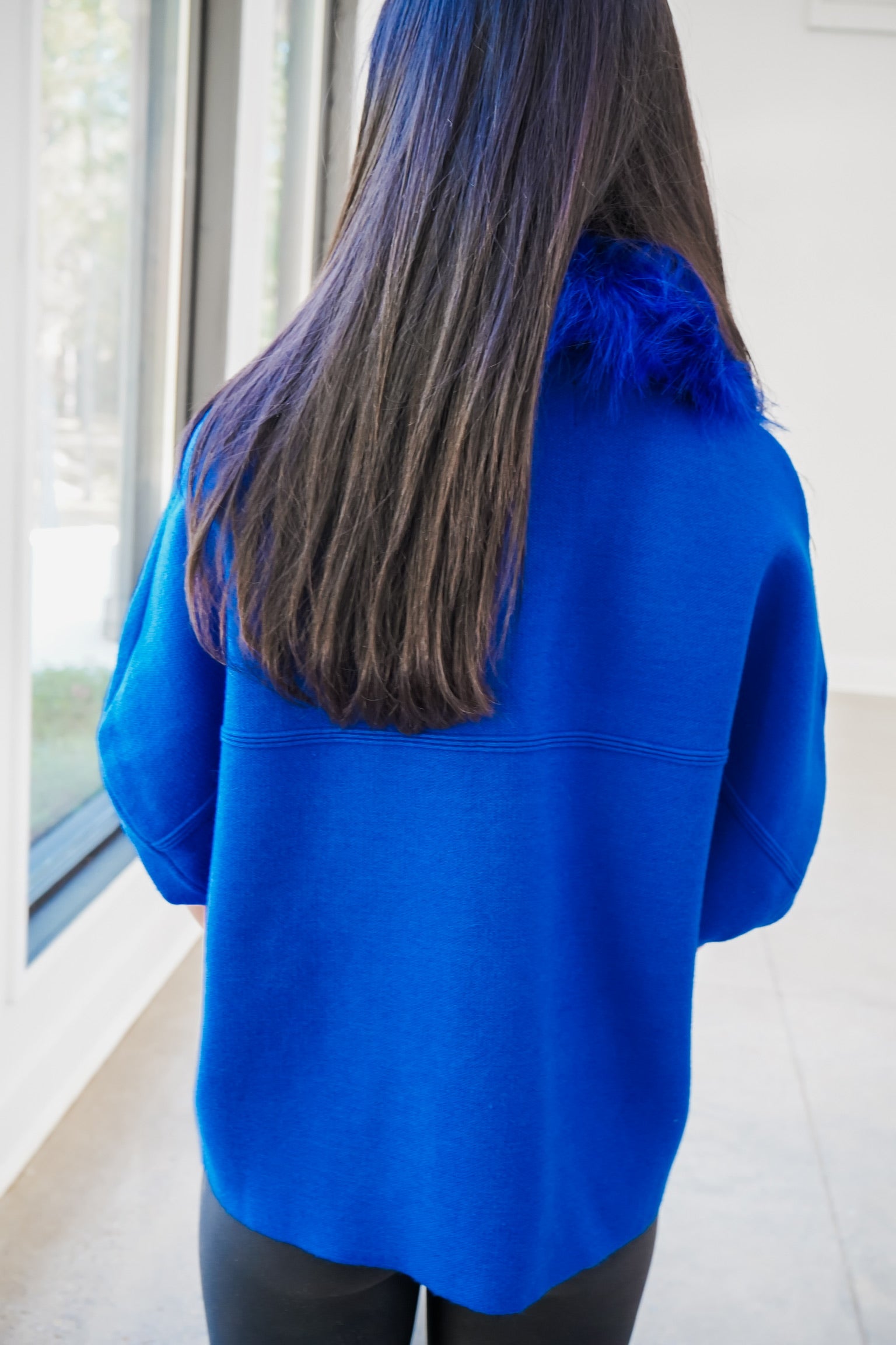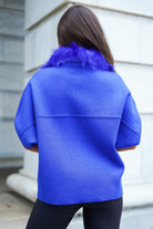 Faux Fur Trim Cardigan - Blue