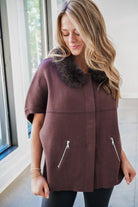 Faux Fur Trim Cardigan - Espresso