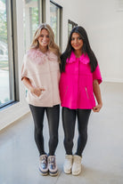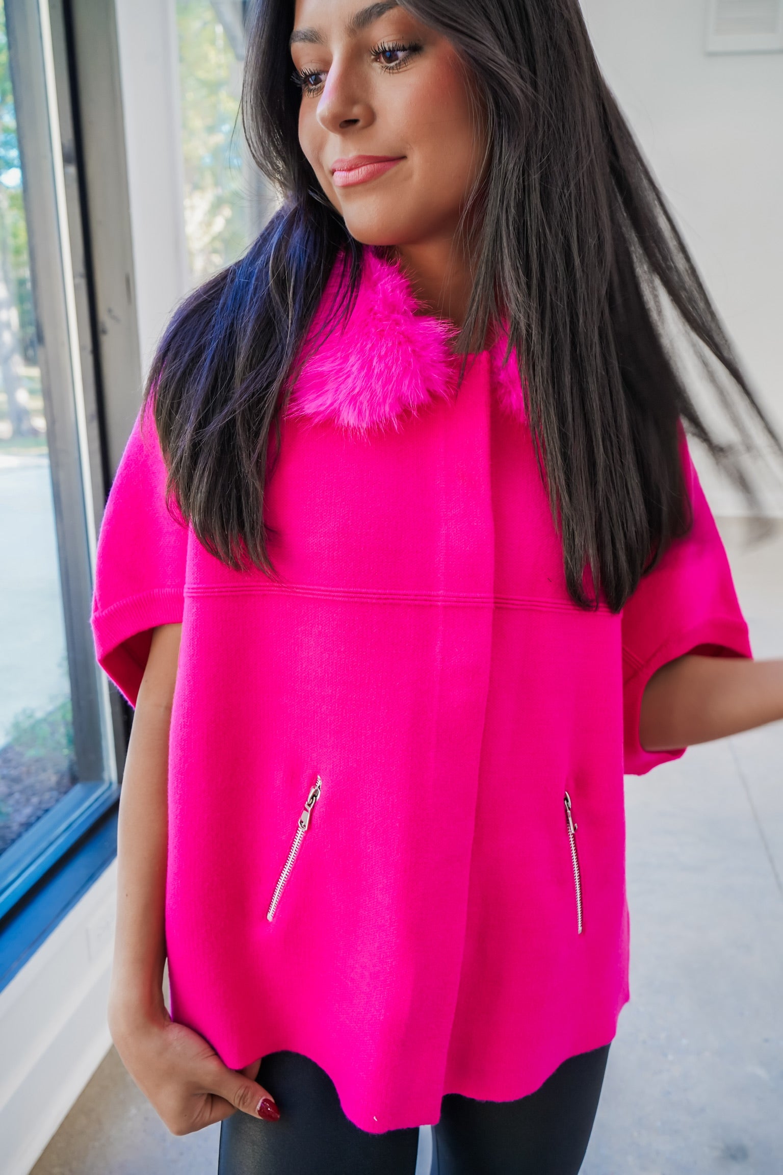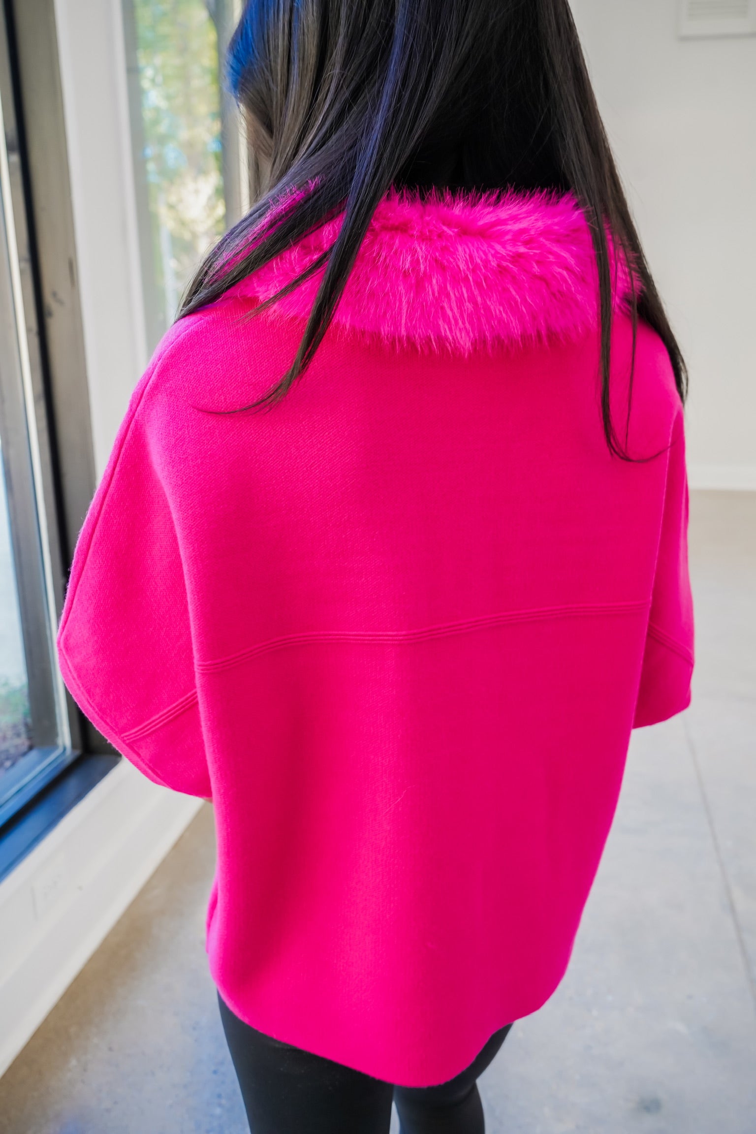 Faux Fur Trim Cardigan - Hot Pink