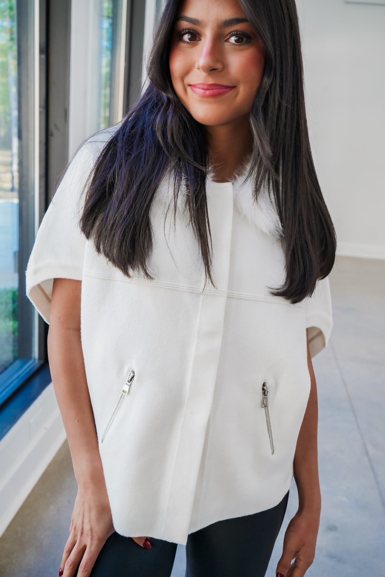 A chic addition to any wardrobe, our Short Sleeve Cardigan with Natural Fur Collar seamlessly combines comfort and elegance. Featuring a dropped shoulder design, its standout element is the luxurious 100% raccoon fur collar, which offers a touch of opulence. Hidden front snaps maintain a clean and polished aesthetic, making this cardigan a versatile choice for both casual and formal occasions.