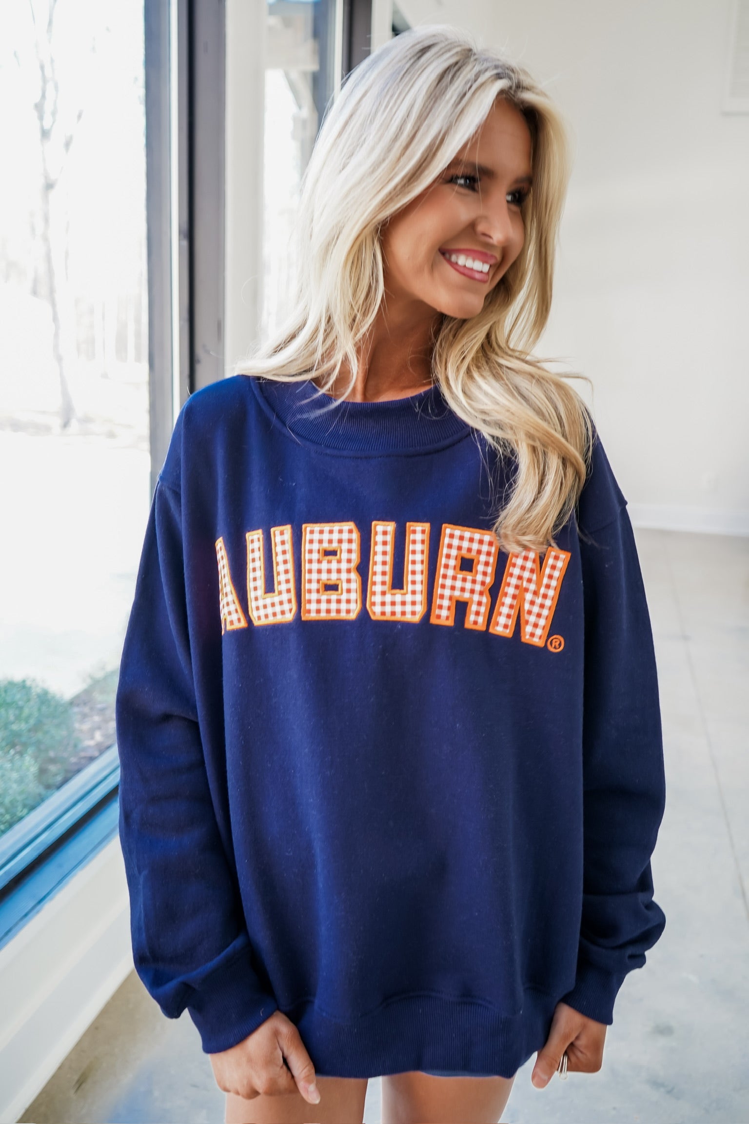 Say hello to your new favorite mockneck. The Mallory Gingham Mockneck features a high-quality appliqué arch with gingham fabric inside — the cutest way to rep your favorite school. It’s made from a thicker, midweight cotton-poly blend that feels soft, sturdy, and perfect for everyday wear.