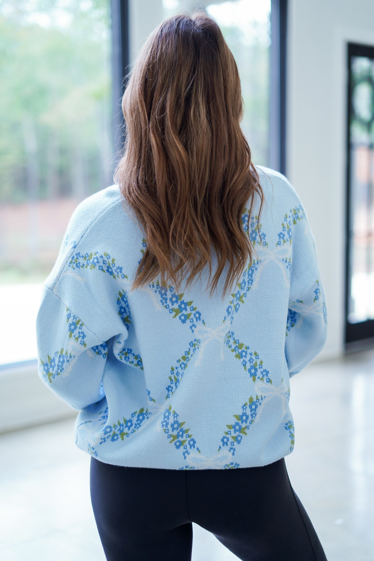 The Valli Sweater is a must-have for any fashion-forward individual. This v-neck ribbed hem sweater features a stunning floral vine and bow quilted print that adds a touch of charm and femininity. Experience the perfect blend of style and comfort with the Valli Sweater.