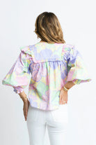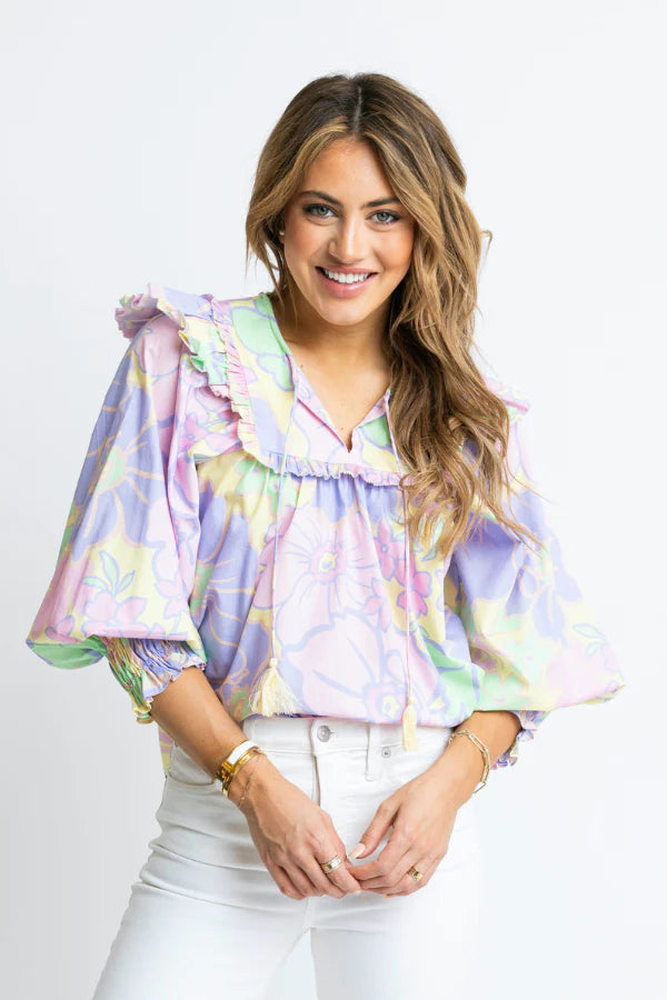 Add a touch of whimsy to your wardrobe with the Reanne Top in soft lavender. Featuring a charming pastel floral design, this playful piece brings fresh, delicate colors perfect for sunny days and casual outings. Lightweight and breezy, it’s ideal for staying comfortable while showing off your fun, feminine style. Embrace the joy of floral in a refreshing new way with this lively top.