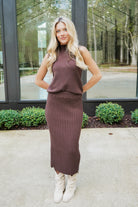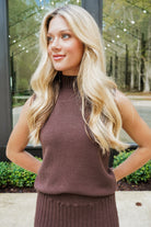This sleeveless knit top features a relaxed fit and a cozy ribbed mock neck, perfect for layering or wearing solo. Its soft fabric and easy silhouette keep you comfy while adding a touch of effortless style to any outfit. Play with textures and accessories to make it your own!