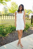 Be the life of the party in our Joan Mini Dress! This playful white mesh overlay dress features a bow tie shoulder strap and a fitted design, adding a touch of whimsy to any occasion. With a slip underneath for added coverage, you'll look effortlessly chic in this quirky and fun mini dress.