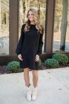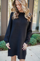Sweater dress with long raglan sleeve, center front piping and roll hem accents from Kerisma.