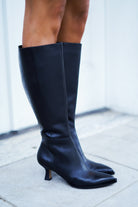 The epitome of wardrobe staple. There’s something undeniably timeless about AUGGIE’s sleek silhouette. Sustainably crafted in classic leather or rich suede, this knee-high heeled boot pairs well with warmer layers and sweater dresses.