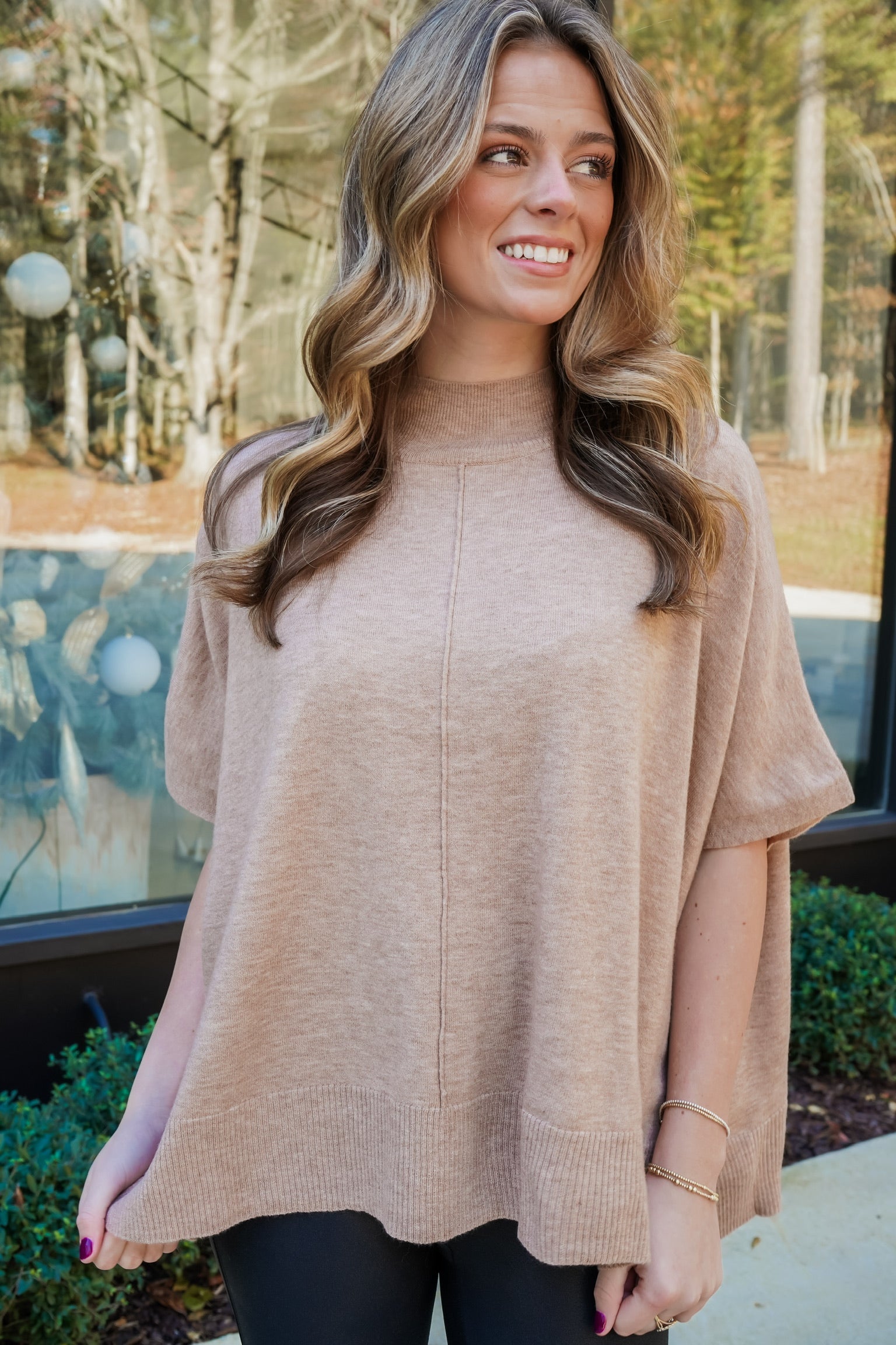 Oversized turtleneck top with short sleeves and CF seam detail.