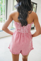 This playful romper features a charming red gingham print and a strapless, sleeveless design perfect for sunny days. The bow detail on the bodice adds a flirty touch, making it an easy choice for casual outings or weekend fun. Lightweight and stylish, it’s your go-to for effortless summer style.