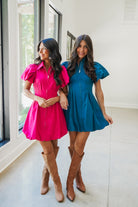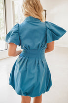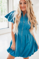 Dress to impress with our Elodie Dress! This collared mini dress features puff sleeves and a full front zipper closure for a touch of vintage flair. The pleated dart detail ensures a cinched and flattering fit, while the bubble hem adds a playful twist. Perfect for any occasion, this dress is a must-have in your wardrobe.