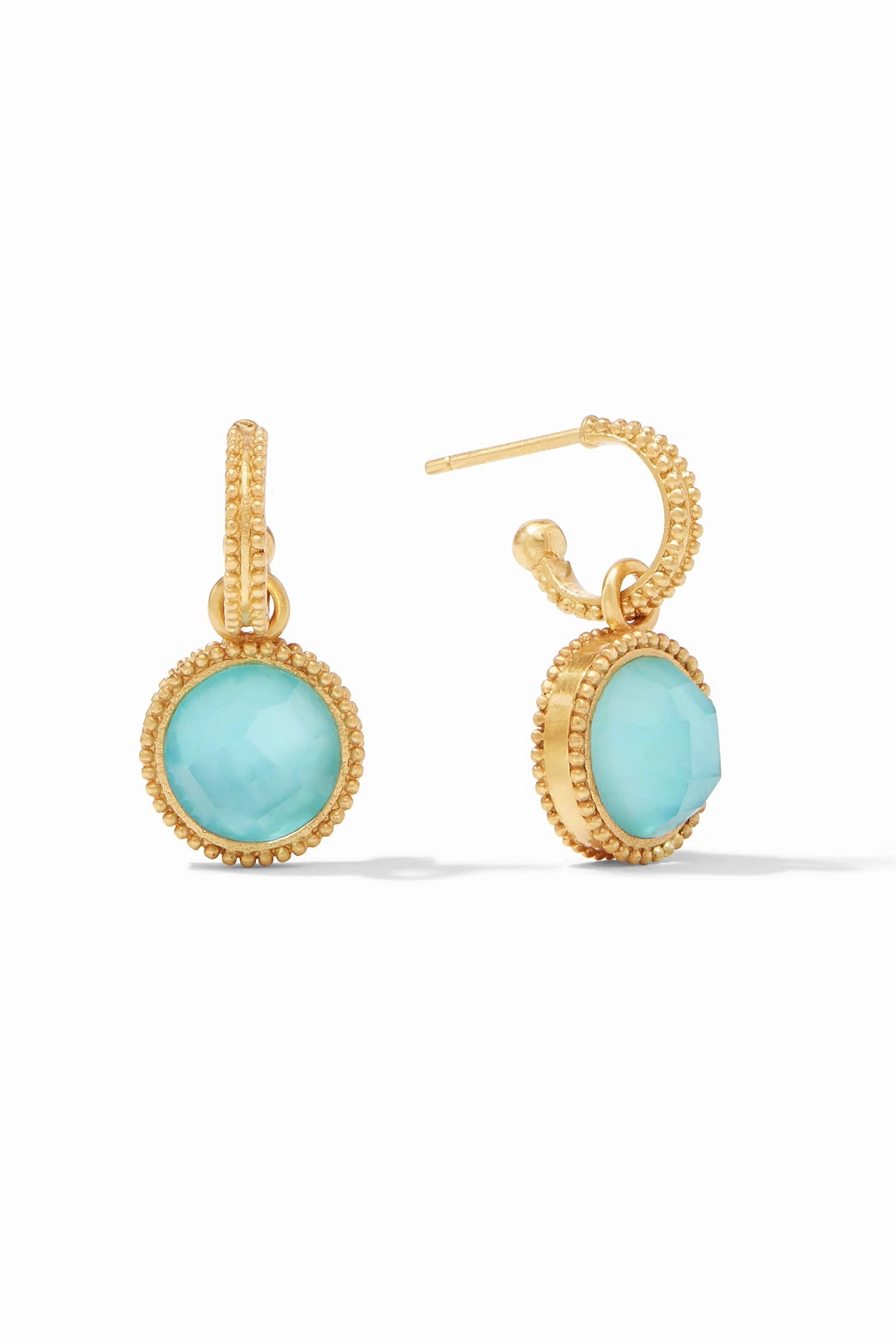 JULIE VOS Fleur-de-Lis Hoop & Charm Earring - Iridescent Bahamian Blue