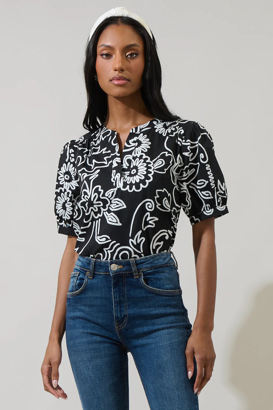Prepare to collect compliments all day long with this flattering top. A classic top that has short puff sleeves followed by a split neckline that forms into V-neck. Pair with skinny jeans and ankle boots for a look that’s both casual and polished.